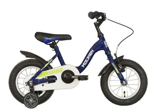 A Koliken Lindo 12 colos kerékpár kék-zöld színben készült, egysebességes váltóval és támkerékkel felszerelve.