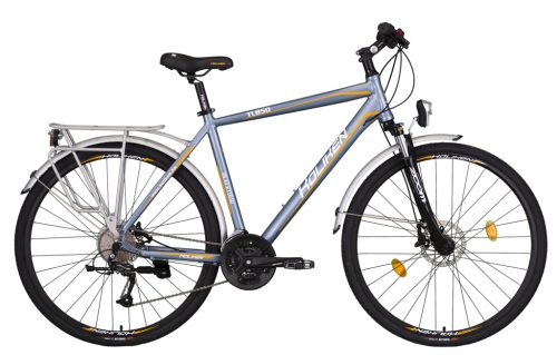 A Koliken 28 Blacktour 21 váz férfi kék-narancs váltós kerékpár kiváló társ a napi városi közlekedésben, praktikus felszereltséggel.