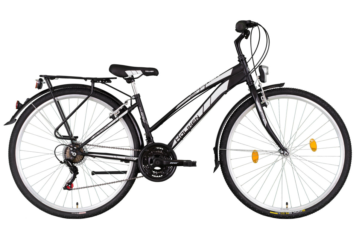 A Koliken Gisu egy acél hajlított női vázas kerékpár, amely kiváló stabilitást és kényelmet nyújt a mindennapi használat során. Az alumínium V-típusú fékek megbízható működést biztosítanak bármilyen városi közlekedési helyzetben, míg a Shimano hatsebességes racsni és az SHIMANO Rs35 váltókar lehetővé teszi a könnyű irányíthatóságot különböző terepeken. A kényelmes Gisu nyereg és az elemes világításszett tovább növeli a komfortérzetet és biztonságot rövidebb vagy hosszabb utak alkalmával. A masszív acél csomagtartó praktikus megoldásokat kínál az ügyintézés vagy bevásárlás közbeni szállításhoz.