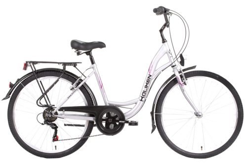 A Koliken Sweet Bike 28 SX6 ezüst egy hagyományos láncváltós városi kerékpár, amelynek 28 colos kerekei és hatsebességes váltója segítik a kényelmes és stabil haladást a városi környezetben. Kifejezetten női kialakítású, így ergonomikus használatot biztosít a mindennapi közlekedés során.