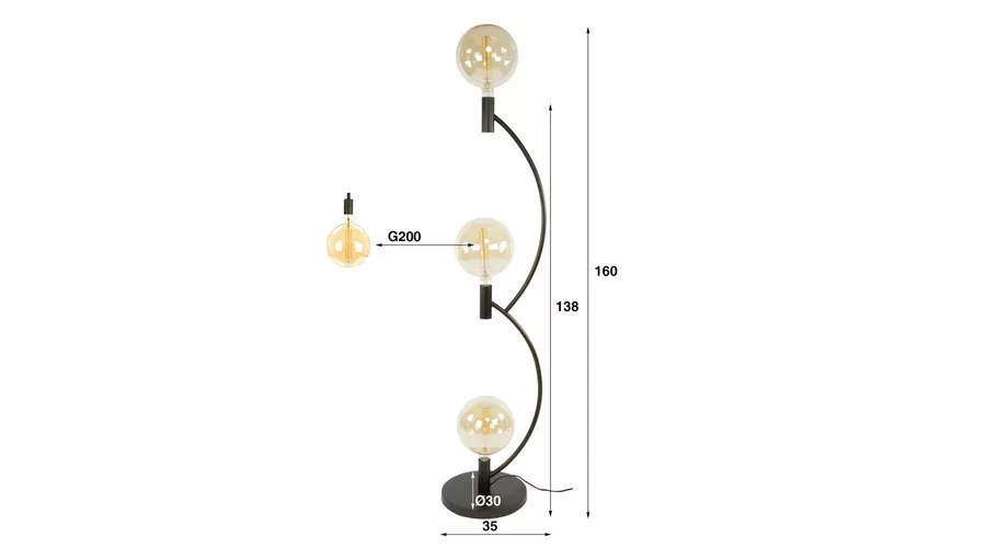 Az ARCUS állólámpa ívelt fém vázzal készült, bronz színű bevonattal. A lámpa formavilágát lágy, áramló vonalak jellemzik, és három foglalattal rendelkezik, amelyek nagyméretű, gömb alakú fényforráshoz alkalmasak. Modern és elegáns megjelenésével különleges hangulatot teremt a térben. A legjobb fényhatás érdekében LED izzó használata ajánlott.