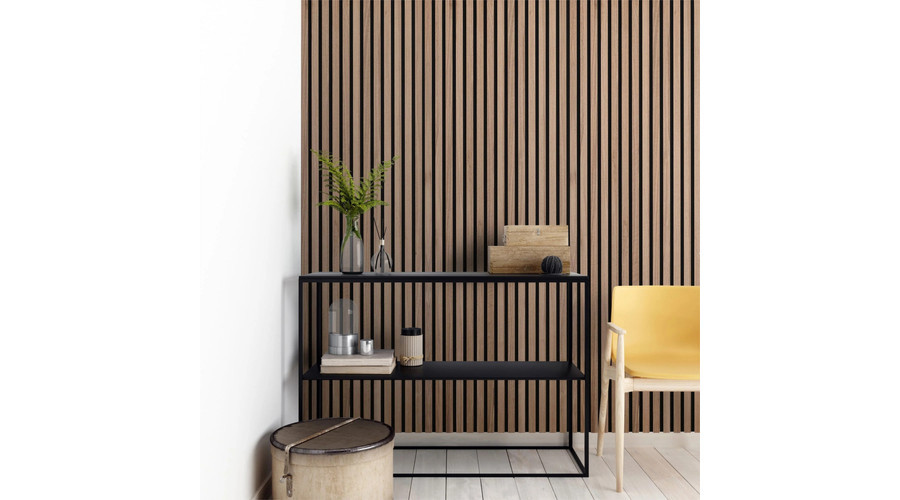 A fekete dió színű akusztikus panel MDF-lécből és PET poliészter filcből készült, ami tartósságot és jó hangelnyelő képességet biztosít. Az egyszerű felszerelhetőség lehetővé teszi különböző helyiségek gyors átalakítását anélkül, hogy speciális előkészületekre lenne szükség. A panel teljes felületen befedi a falat vagy mennyezetet, ezzel biztosítva az optimális hangszigetelést.