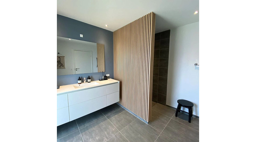 Az Akusztikus falpanel falra és mennyezetre Tölgy egy praktikus és esztétikus megoldás az irodai vagy otthoni akusztikai környezet javítására. Ez a főként MDF-lécből és PET polyester filcből készült panel hatékonyan csökkenti a visszhangot és zajokat, miközben modern megjelenést kölcsönöz a helyiségnek. Alkalmas például otthoni stúdiókba, tárgyalókba vagy bármilyen olyan térbe, ahol fontos a hangminőség javítása zajos környezetben. Egyszerűen falra vagy mennyezetre szerelhető, így könnyen beilleszthető különböző élethelyzetekhez.