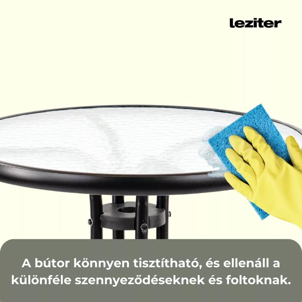Az üveglap és a fémváz egyszerűen tisztítható, így az Andora asztal karbantartása minimális erőfeszítést igényel. Az anyagok ellenállnak a rozsdásodásnak és a fakulásnak, ezért az asztal évekig megőrzi eredeti megjelenését.