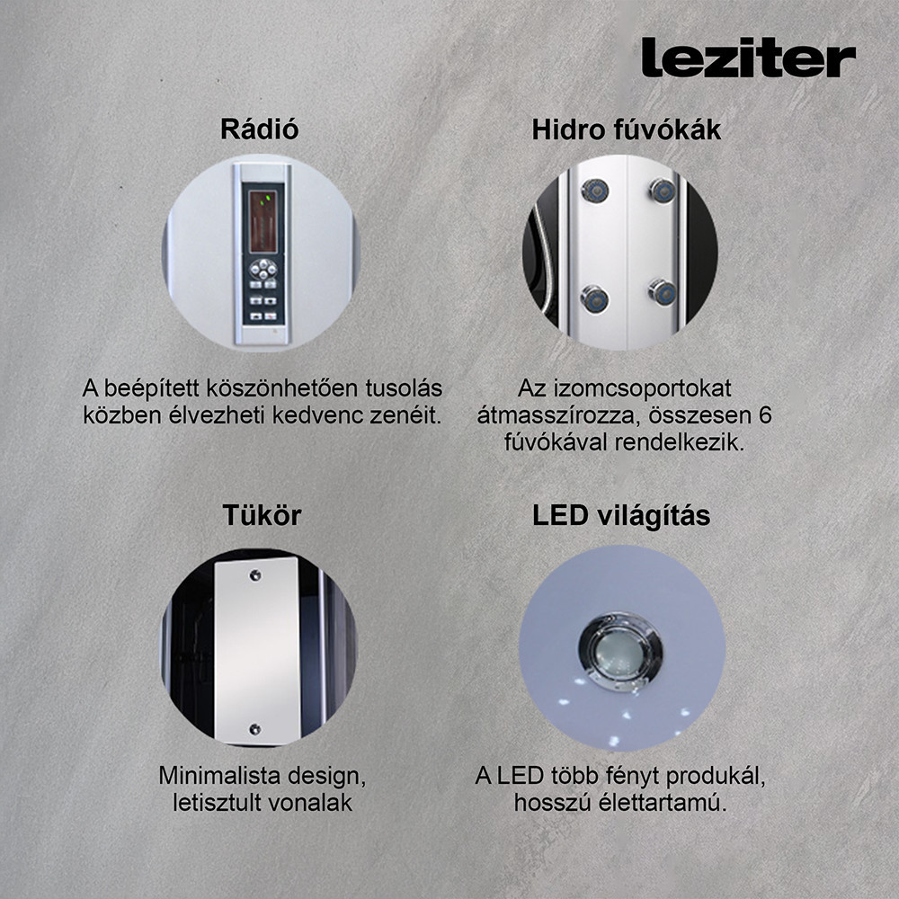 Leziter GM6416 Aria hidromasszázs zuhanykabin jobbos beépítési oldallal telepítés padlóra
