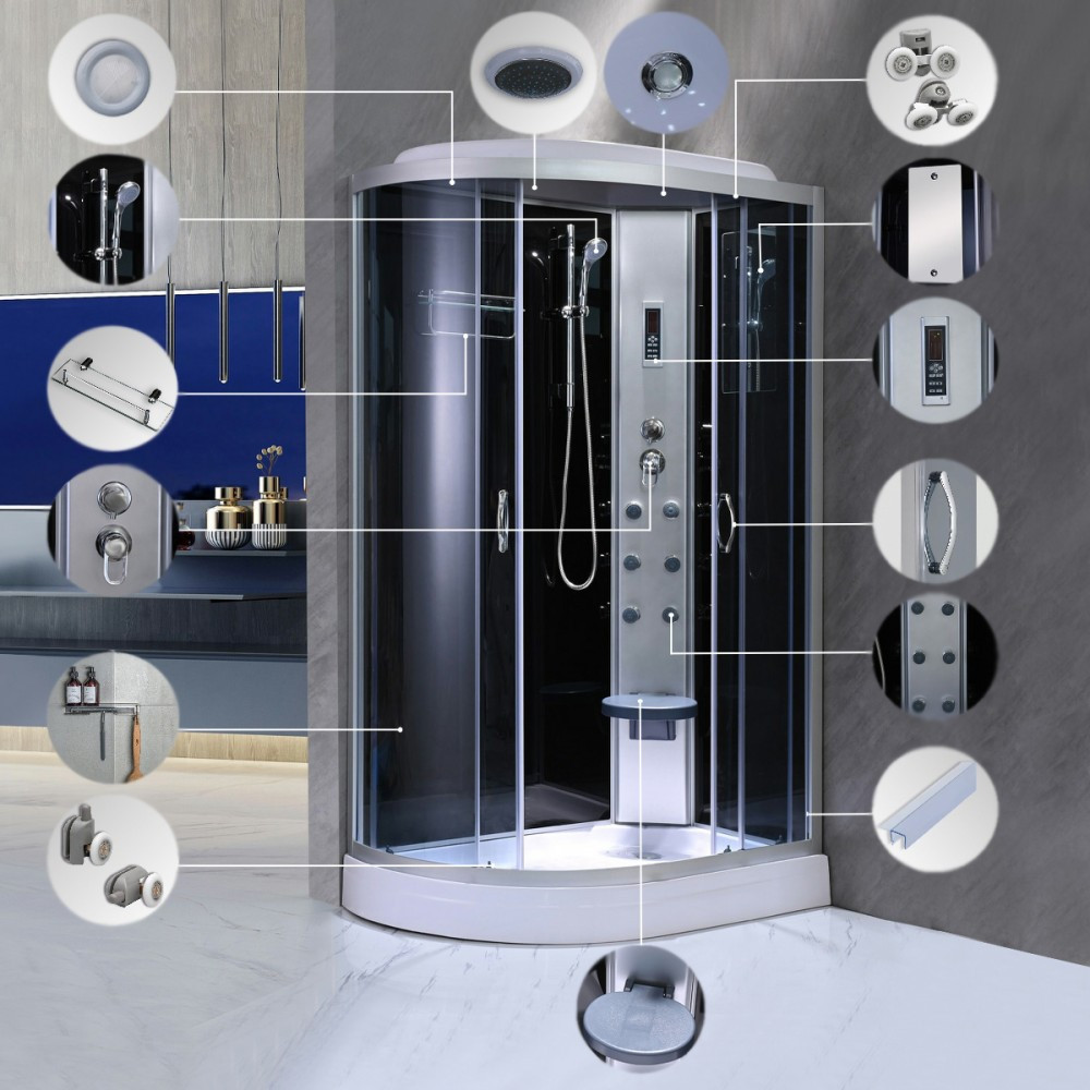 Az Aria hidromasszázs zuhanykabin kialakításának köszönhetően tágas teret biztosít használata közben. 4 mm-es edzett biztonsági üveggel van ellátva ezzel ügyelve a biztonságra. Az Aria mélytálcával kapható ezzel még sokoldalúbbá téve a terméket. A hidromasszázs zuhanykabin 6 fúvókás masszázsrendszerrel is felvan szereleve. Ezenfelül a termékben minden olyan kiegészítő megtalálható ami a tökéletes kényelem megteremtését szolgálja. Ilyen a tükör, polc, ülőke, felső világítás, funkcionális panel és a kezelőpanel.A funkcionalitás mellett természetesen a hidromasszázs zuhanykabin megjelenésére is nagy figyelmet fordítottak. Üvegfelületének, fekete hátfalának és letisztult, modern vonalainak köszönhetően elegáns megjelenést teremt minden fürdőszábanak.