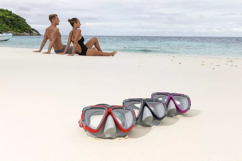 A Bestway® Dominator Mask úszószemüveg tökéletes kiegészítő a víz alatti szórakozáshoz a medencében vagy a tengerben. A felnőttek számára tervezett úszószemüveg széles látószögű, edzett üveglencsével és dupla peremmel rendelkezik, amely pontos és szoros illeszkedést biztosít. A szemüveg 3 színben kapható. Értékelni fogja a teljesen állítható, osztott fejpántot, így mindig szilárdan a helyén marad. Akár úszol, akár sznorkelezel, mindenképpen vedd magadhoz a Dominator Mask úszószemüveget !