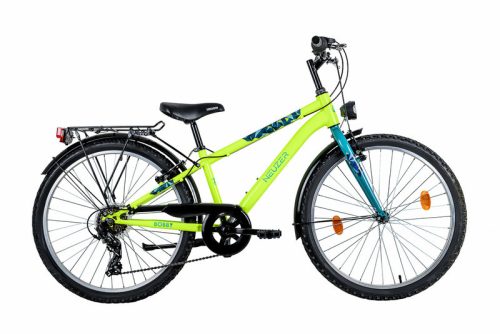 A Neuzer BOBBY 24 CITY sárga/türkiz színű gyermek kerékpár ideális választás gyerekeknek, akik városi környezetben szeretnének kényelmesen és biztonságosan közlekedni, továbbá hosszabb távú családi kirándulásokhoz is megfelel.