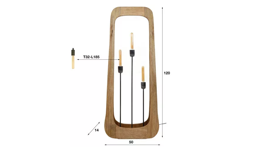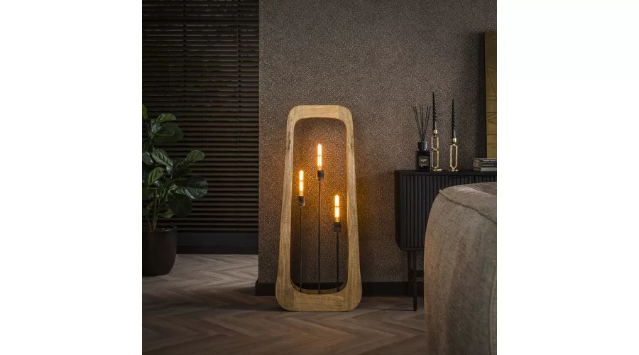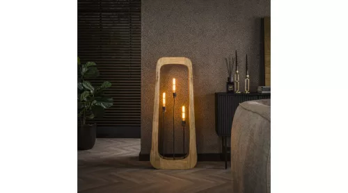 A BRAY trendi állólámpa mangófából készült kivitelben érhető el, amely természetes, meleg hangulatot visz a térbe. A fa nyílásokon keresztül elhelyezett fényforrások kellemes, hangulatos fényeloszlást biztosítanak, így a lámpa nemcsak világít, hanem dekoratív elemként is érvényesül. A modellhez illő asztali lámpa is elérhető, amelyek együtt kombinálva különösen harmonikus, egységes megjelenést teremtenek az enteriőrben. A tökéletes fényélmény érdekében LED izzó használata ajánlott.
