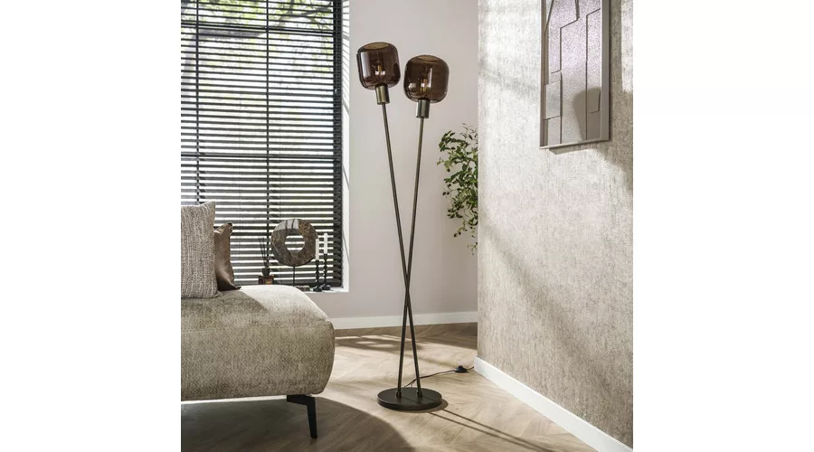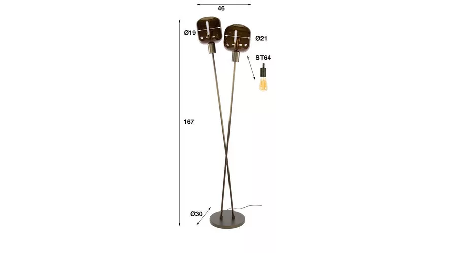 A BRONZA állólámpa bronzszínű fémvázzal rendelkezik. A kialakítás két keresztbe tett, vékony lábból áll, mindkettő tetején üvegburával. A legjobb fényhatás érdekében LED izzó használata ajánlott. A lámpa a BRONZA sorozat része.