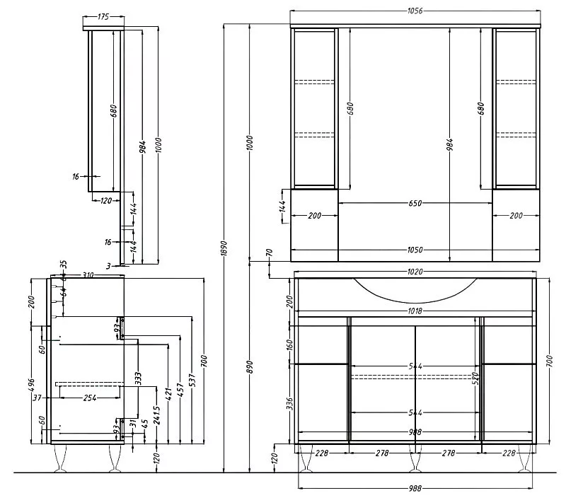 • Felső tükrös elem: 100x105,6x17,5 cm