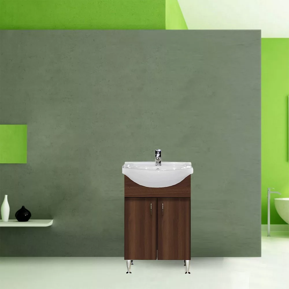 A fürdőszoba bútor kevés helyet foglal viszont tágas szekrénnyel rendelkezik ahol kényelmesen elférnek a fürdőszobai pipere eszközök. Kevés helyigénye miatt kisebb fürdőszobák berendezésére is alkalmas, például panel lakásokban. A termék magas minőségű bútorlapból készül és színben passzoló élzárókkal van ellátva. A fürdőszoba bútor mosdóval együtt kapható.