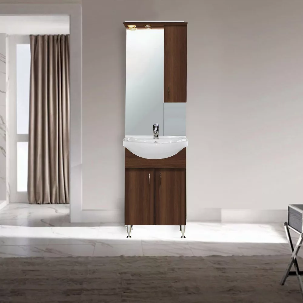 A funkcionalitás mellett természetesen a bútor megjelenésére is nagy figyelmet fordítottak. Aida dió színének és klasszikus vonalainak köszönhetően harmóniát teremt az összes fürdőszoba hangulatában. A bútor anyaghasználatából adódóan (bútorlap) a korpusz oldal színe eltérhet a magasfényű MDF front színétől.