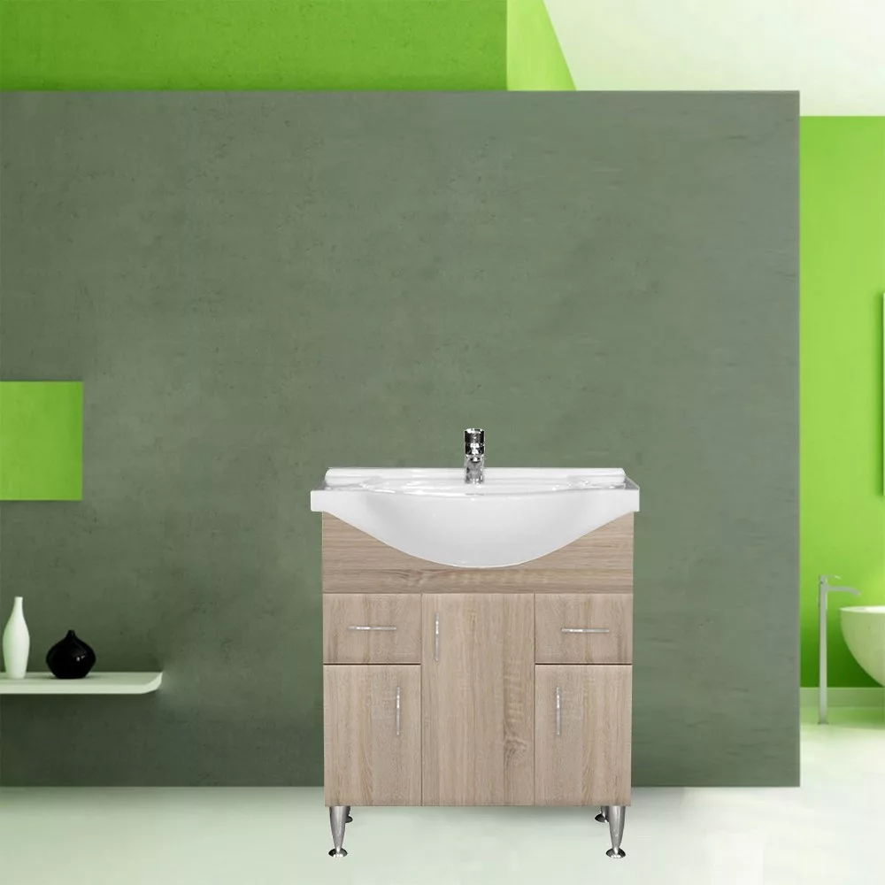 A fürdőszoba bútor kevés helyet foglal viszont tágas szekrénnyel és fiókkal rendelkezik ahol kényelmesen elférnek a fürdőszobai pipere eszközök. Kevés helyigénye miatt kisebb fürdőszobák berendezésére is alkalmas, például panel lakásokban. A termék magas minőségű bútorlapból készül és színben passzoló élzárókkal van ellátva. A fürdőszoba bútor mosdóval együtt kapható.