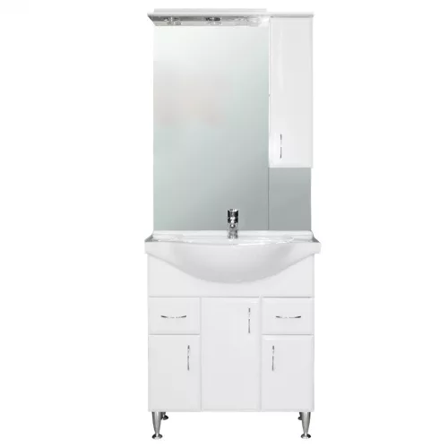 A fürdőszobabútor kevés helyet foglal viszont tágas alsó és felső szekrénnyel rendelkezik ahol kényelmesen elférnek a fürdőszobai pipere eszközök. Kevés helyigénye miatt kisebb fürdőszobák berendezésére is alkalmas, például panel lakásokban. A termék magas minőségű bútorlapból készül és színben passzoló élzárókkal van ellátva. A fürdőszoba bútor mosdóval együtt kapható.