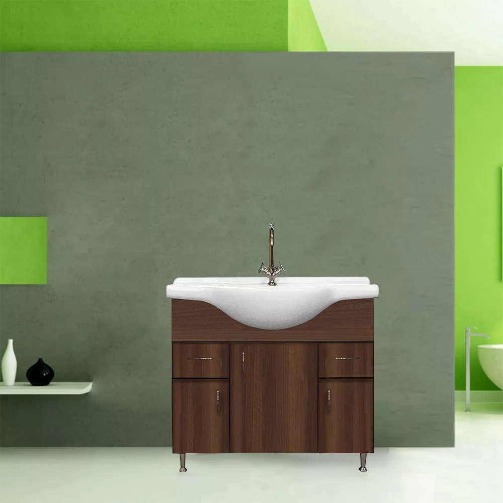 A fürdőszoba bútor kevés helyet foglal viszont tágas szekrénnyel és fiókkal rendelkezik ahol kényelmesen elférnek a fürdőszobai pipere eszközök. Kevés helyigénye miatt kisebb fürdőszobák berendezésére is alkalmas, például panel lakásokban. A termék magas minőségű bútorlapból készül és színben passzoló élzárókkal van ellátva. A fürdőszoba bútor mosdóval együtt kapható.