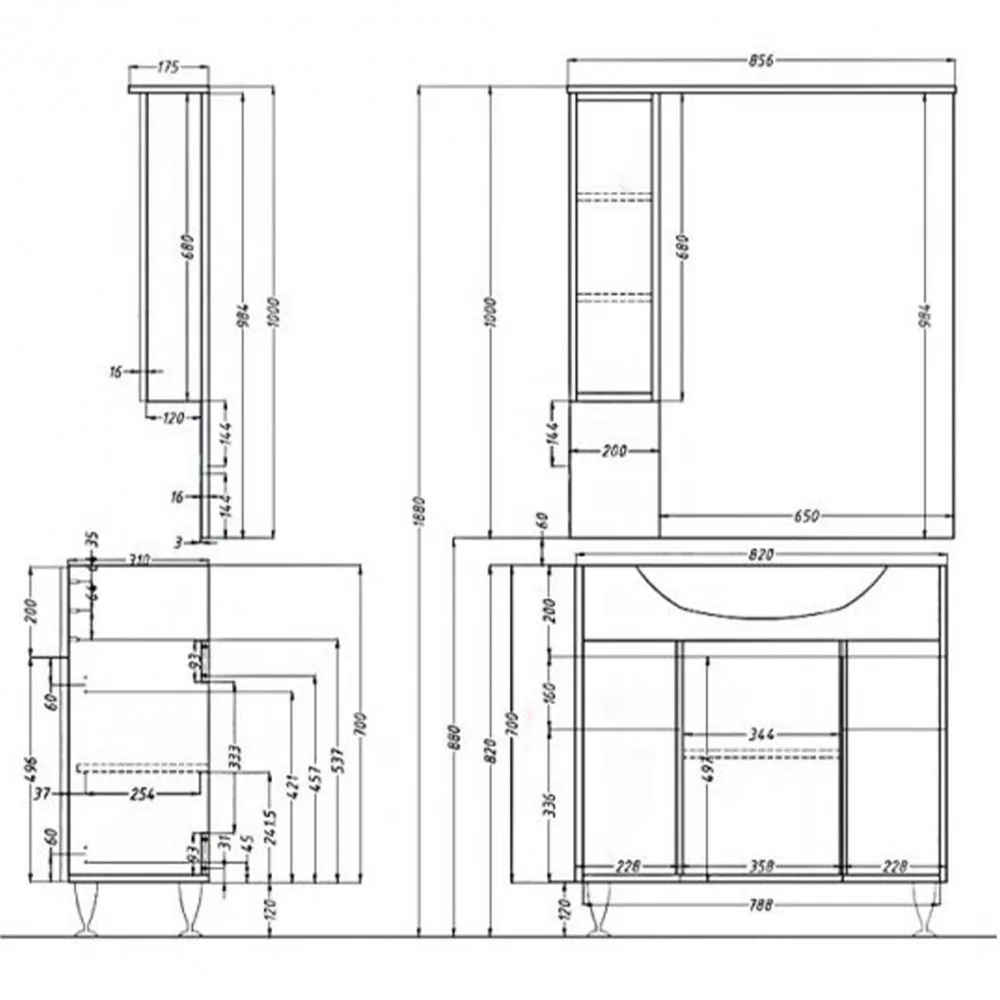 • Felső tükrös elem : 100x85,6x17,5 cm