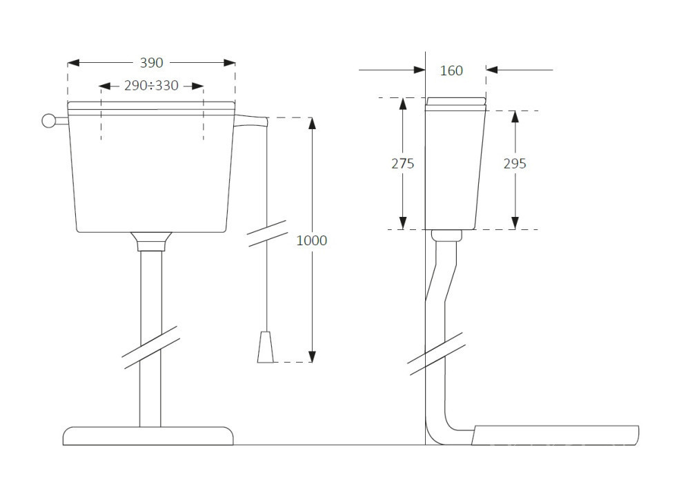 CR ALFA WC tartály - 8l - magas szereléshez - 39 x 30 x 16 cm
