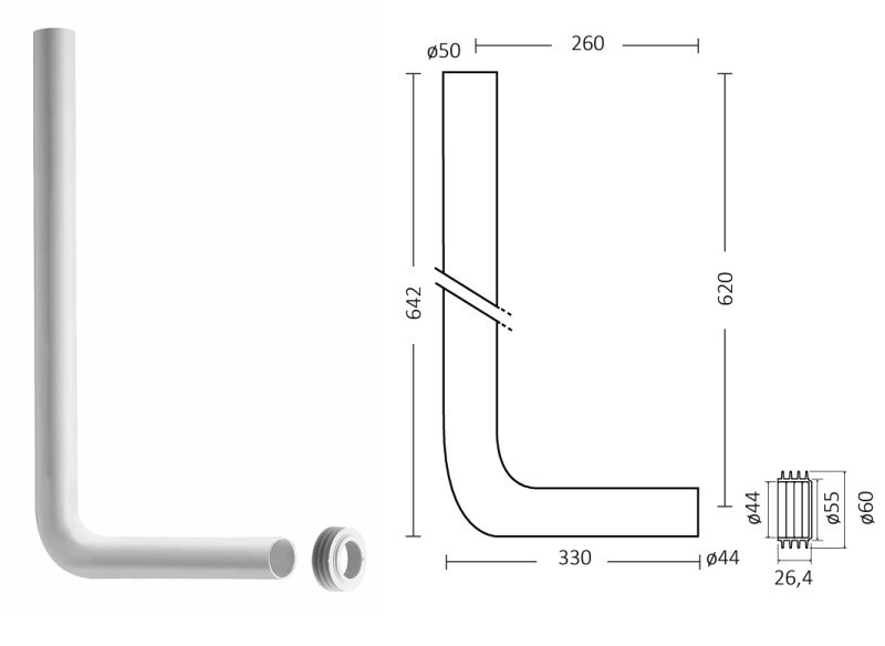 CR WC bekötőcső Ø 50 -es - középmagas szereléshez + WC szimeringgel