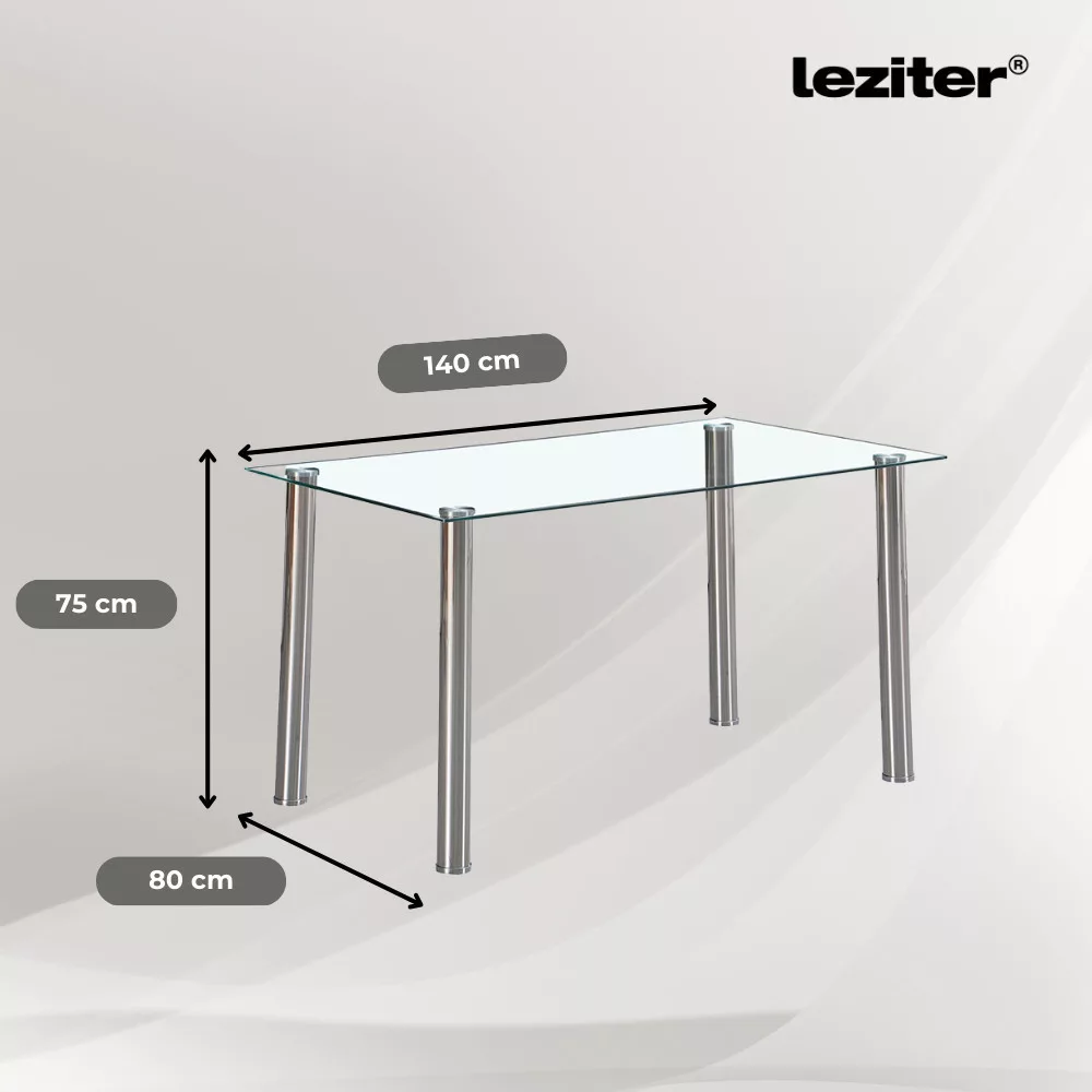 Sok étkezőasztal idővel instabillá válik, vagy nem illeszkedik a modern terekhez. A Leziter Berna 140 cm szögletes üveg étkezőasztal letisztult, minimalista kialakítással és masszív rozsdamentes acél lábakkal hosszú távon biztosítja a stabilitást és eleganciát. Az asztallap 8 mm vastag edzett üvegből készült, amely ellenáll a mindennapi használatból eredő ütődéseknek és karcolásoknak.