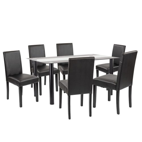 A szett hat darab Leziter Kelly széket is tartalmaz, amelyek fekete ECO bőr kárpitozással készültek. Az elegáns megjelenés mellett ezek a székek rendkívül könnyen tisztíthatók. A 4 cm vastag habszivacs ülőfelület hosszabb étkezések során is komfortot nyújt, a stabil fenyőfa lábak pedig 120 kg teherbírással garantálják a hosszú távú megbízhatóságot.