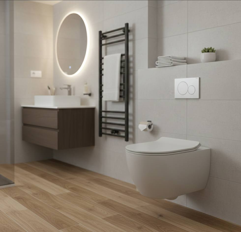 • Rejtett Szerelés (Esztétikus Dizájn): A fali rögzítés és a speciális, rejtett felfogató csomag modern, letisztult megjelenést garantál, mivel nincsenek látható csavarok vagy csatlakozások. A fürdőszoba takarítása is egyszerűsödik, mivel a padlófelület teljesen szabadon marad.