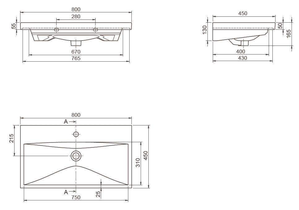 CeraStyle ELITE porcelán mosdókagyló 80 cm - 80 x 45 cm