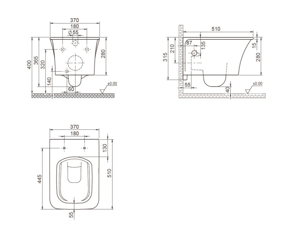 CeraStyle IBIZA fali WC - MATT FEHÉR - BEÉPÍTETT bidé funkcióval - perem nélküli