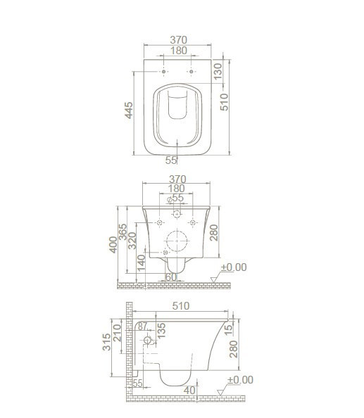 CeraStyle IBIZA fali WC - MATT SZÜRKE - BEÉPÍTETT bidé funkcióval - perem nélküli