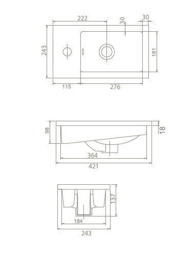 A lefolyó, a bűzelzáró szifon, a csaptelep és a csavarok nem alap tartozékok és nem tartalmazza az ár!