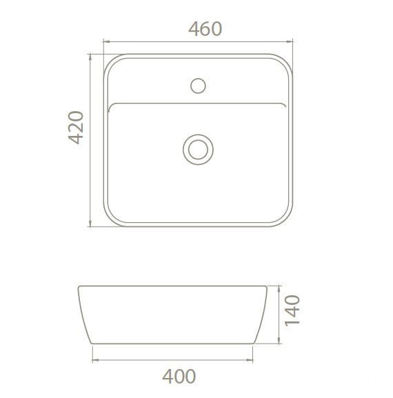 CeraStyle ONE Top Counter - szögletes - pultra ültethető porcelán mosdókagyló csaplyukas 46 x 42 cm