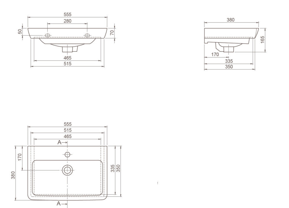 CeraStyle PORTO porcelán mosdókagyló 55 x 38 cm