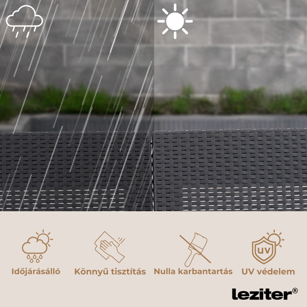 • Anyag: UV-álló, időjárásálló műanyag, modern rattan hatással