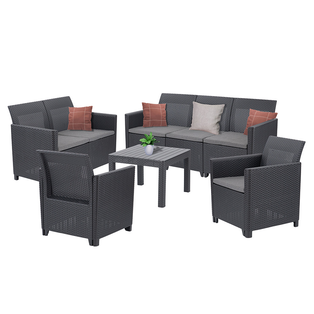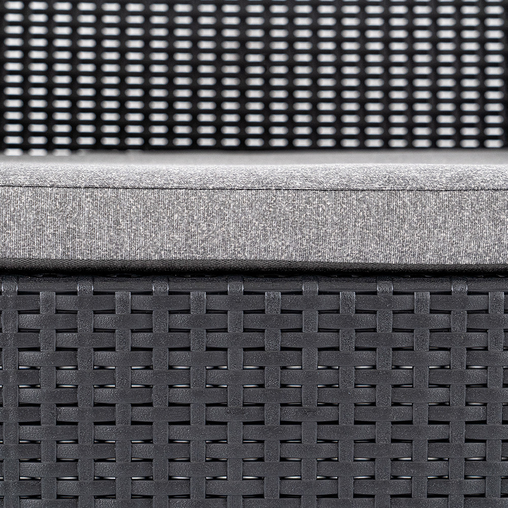 A bútorok modern, sötétszürke színvilága és szögletes formatervezése jól illeszkedik bármilyen kültéri környezethez, legyen szó modern, mediterrán vagy klasszikus stílusról.