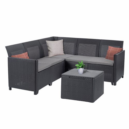 A kompakt és letisztult megjelenésű sarokgarnitúra kiváló választás akár kisebb teraszokra is. Modern formatervezése illeszkedik a legtöbb kültéri enteriőrhöz, így esztétikai élményt is nyújt.