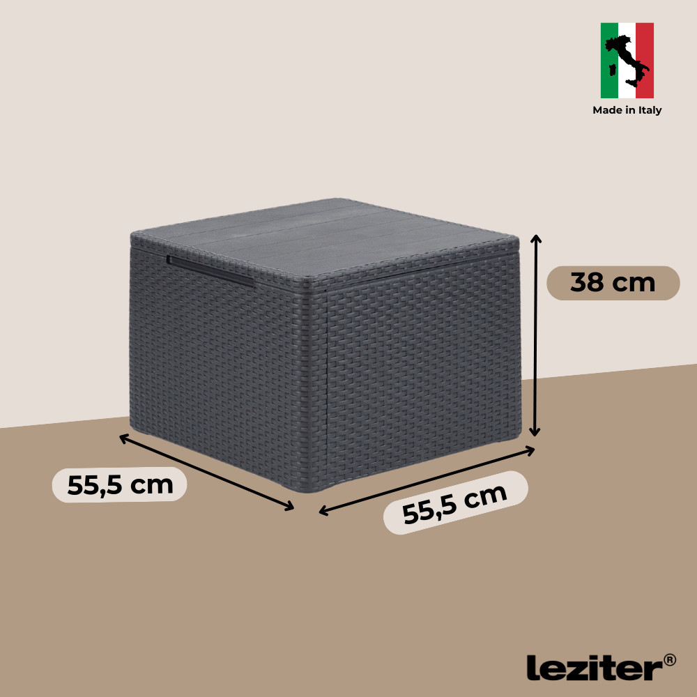 A garnitúrához tartozó párnatartós asztal nemcsak helytakarékos és praktikus, hanem stílusos kiegészítője is az ülőgarnitúrának. Tároló funkciója révén mindig kéznél tarthatod a párnákat vagy egyéb kültéri kiegészítőket.