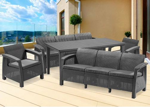 Első pillantásra úgy tünhet, hogy a bútorok rattanból készültek, de valójában egy kiváló minőségű müanyagból hozták létre, amely ellneáll a szélsőséges időjárási viszonyoknak. Lapos párnák, széles kartámaszok és kontúros háttámlák biztosítják a székek és kanapék kényelmét. A bútorgyártó a Curver márka, amely kiváló minőségű kerti bútorokat készít fröccsöntött műanyagból. Egy csoportban működik a közismert és népszerű Keter és Allibert márkákkal Lengyelországban.