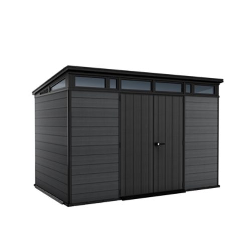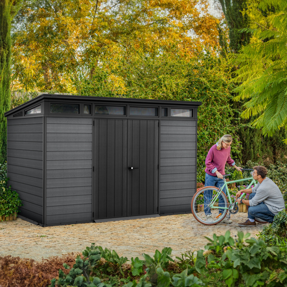 A Cortina kerti ház formatervezése a modern építészeti vonalakat követi. A ferde tető és az ablaksáv feletti dizájnja az egyszerűség és elegancia jegyében készült, amely tökéletesen illeszkedik a modern kerti környezetbe, miközben praktikus tárolóhelyet biztosít.