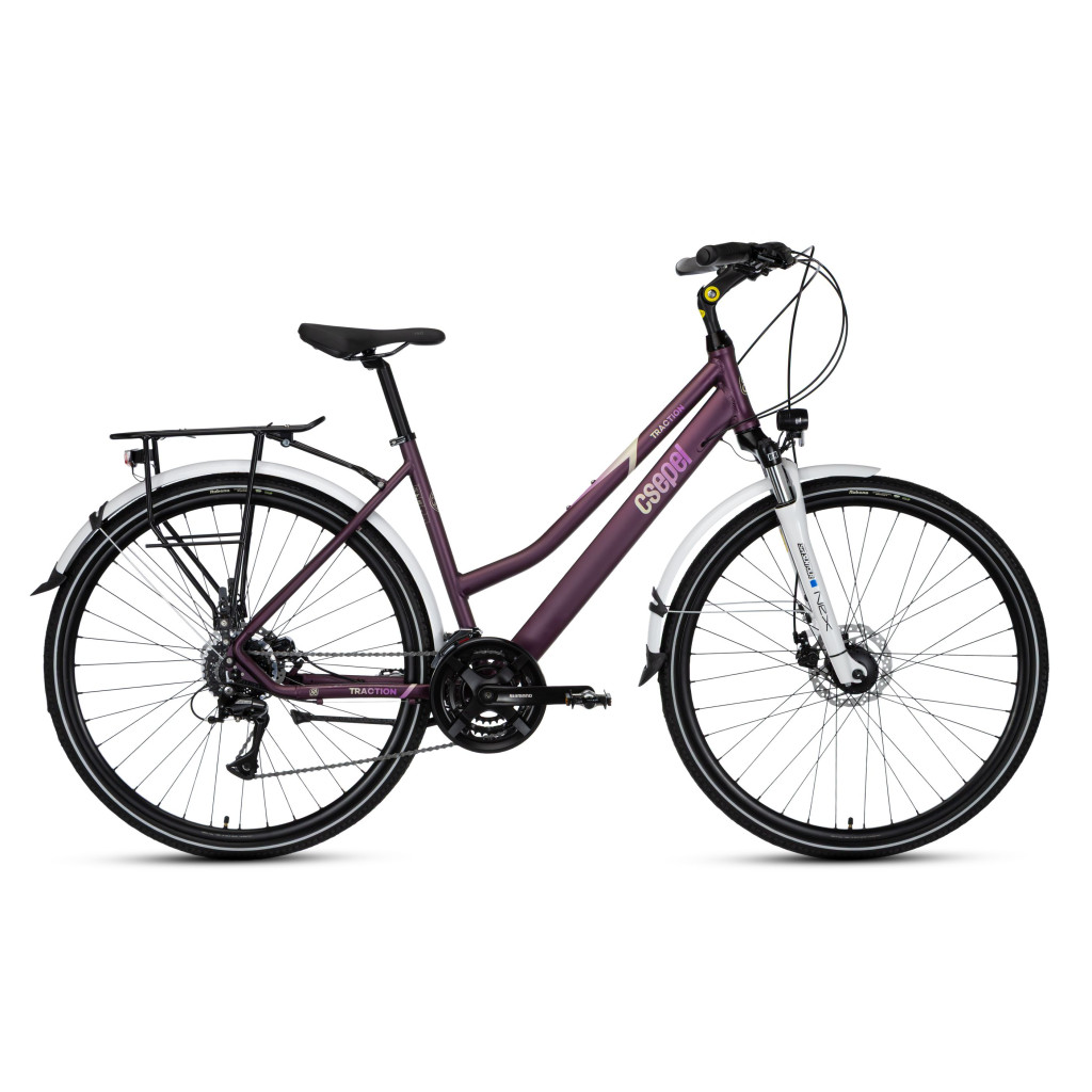 A Csepel TRACTION 200 női kerékpár praktikus kialakítású, matt lila színben. Kiváló választás mindennapi városi közlekedéshez.