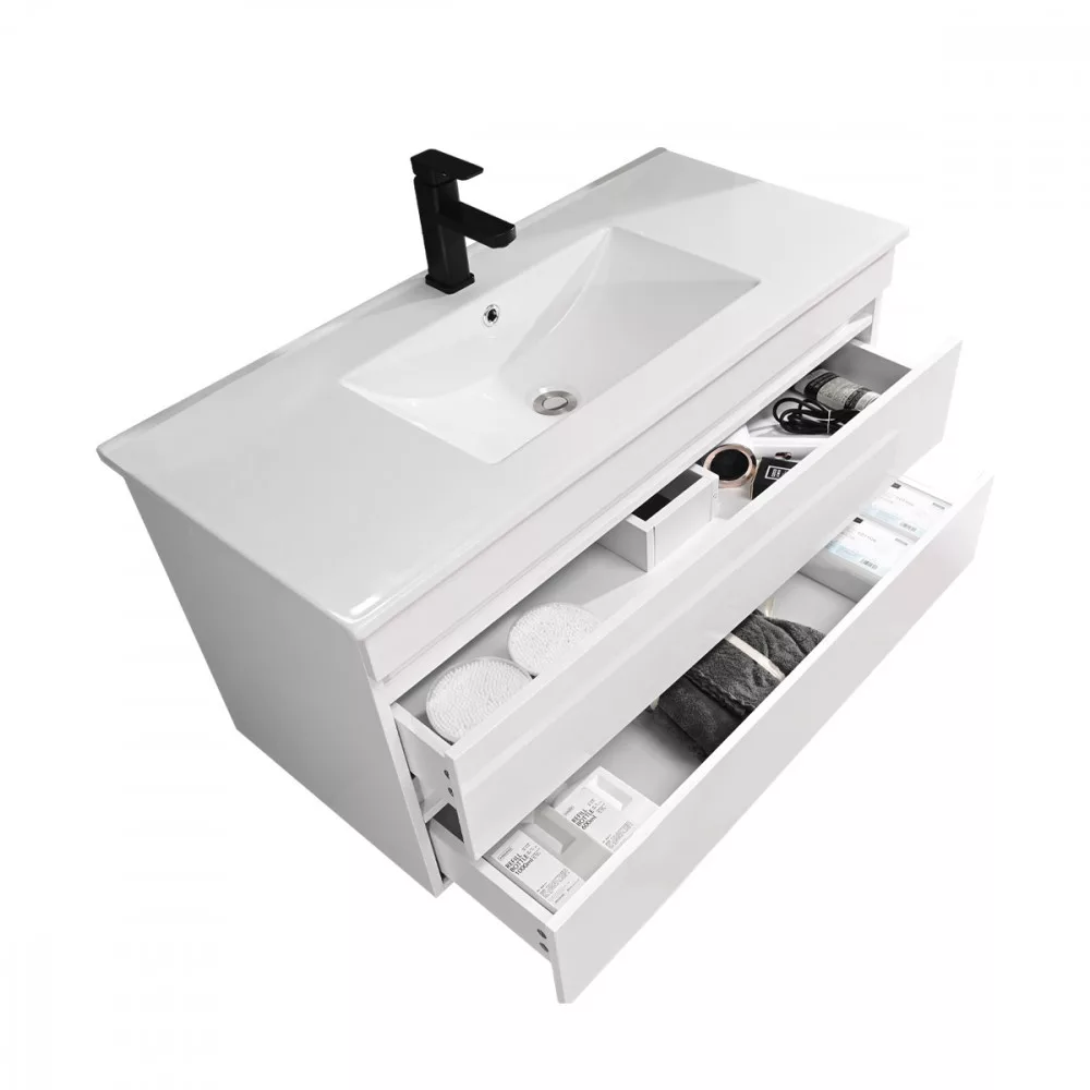 A csomag részét képzi egy méretben passzoló kerámia mosdó is, így ezt nemkell külön beszereznie. A mosdó elkészítésekor kiváló minőségű kerámiát alkalmaztak, ezzel garantálva az időtállóságot. A mélymedencével ellátott mosdóban egy csaptelepnek van kialakított hely.