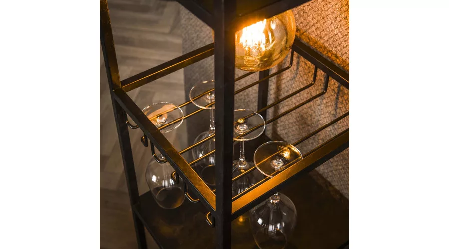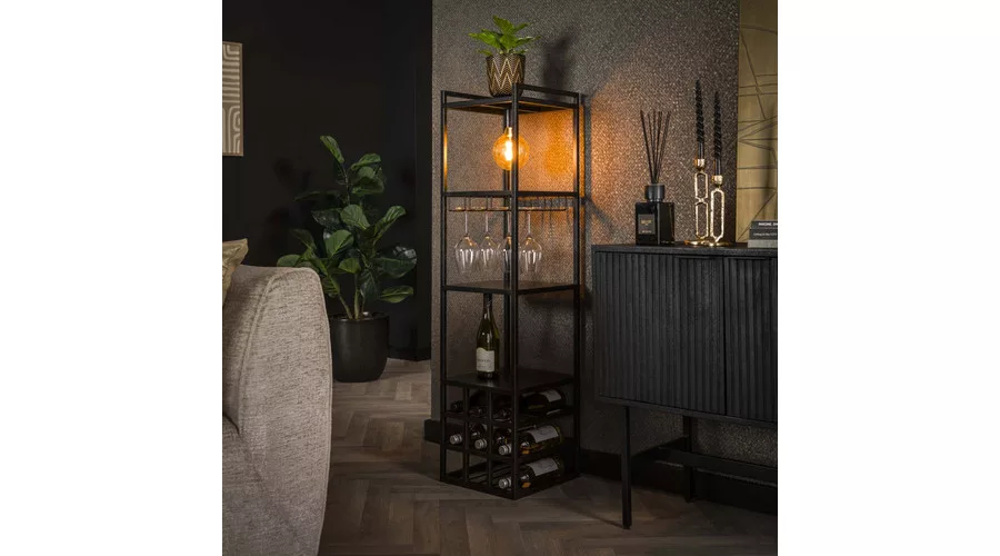 A DECORATE állólámpa téglalap alakú fém vázzal rendelkezik, antracit szürke felülettel. A lámpa a felső rekeszben egy fényforrással biztosít hangulatos világítást, miközben praktikus funkcionalitást is kínál. A lámpa kialakítása lehetővé teszi, hogy borospoharak akaszthatók legyenek, egy nyitott rekesz áll rendelkezésre, valamint hely van 9 borosüveg tárolására. A lámpa tetején további tárgyak is elhelyezhetők. A legjobb fényhatás érdekében LED izzó használata ajánlott. A sorozathoz tartozik egy hozzáillő függesztett lámpa is, így a kollekció harmonikusan kombinálható.
