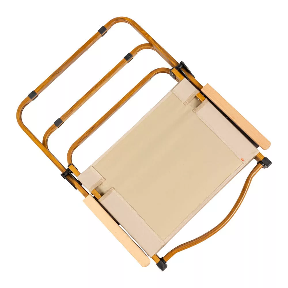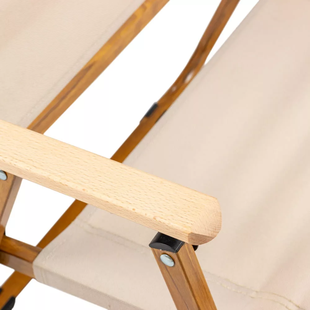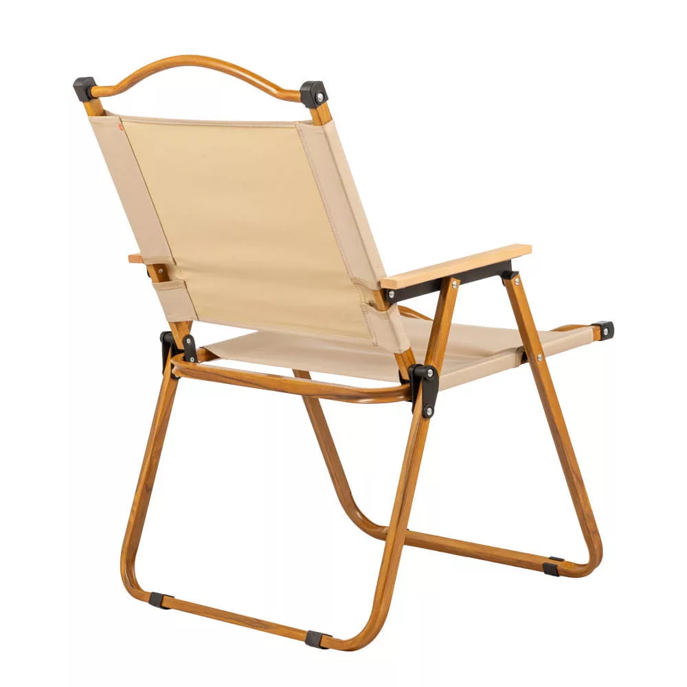 A kényelmes kempingszék a funkcionalitást és az eleganciát ötvözi. A magasabb háttámlával ellátott szék a szabadban való pihenés kényelmét szolgálja. A váz acélból készült fahatású festéssel, amely garantálja a szerkezet megbízhatóságát és szilárdságát. A fa karfák további varázst adnak, miközben hangsúlyozzák a tartósságot.