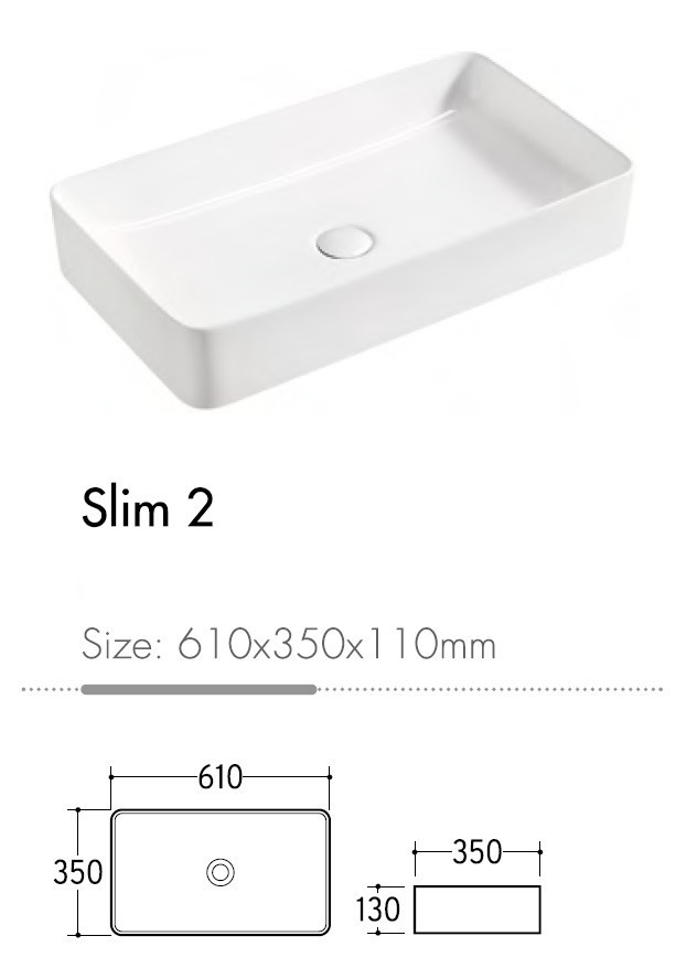 EROS - Top Counter pultra ültethető porcelán mosdó - SLIM 2 - 61 x 35 x11 cm