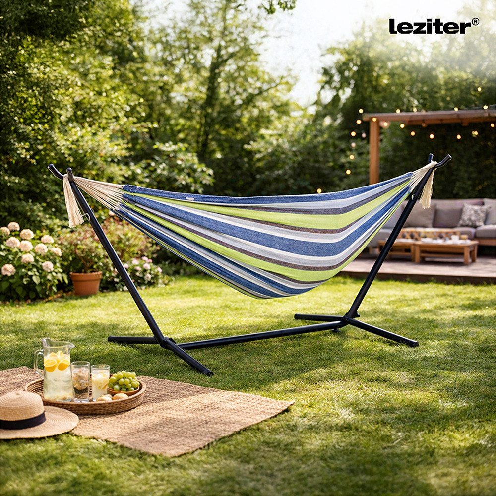 Kerti függőágy állvánnyal kényelmes pihenéshez