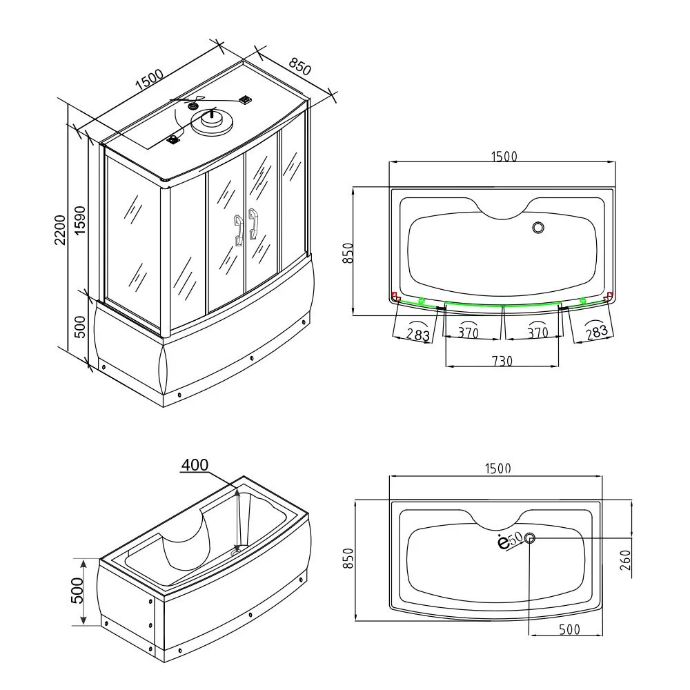 Leziter HTSR-150B Emilia 150 hidromasszázs kádkabin elektronikával black szerelési útmutató