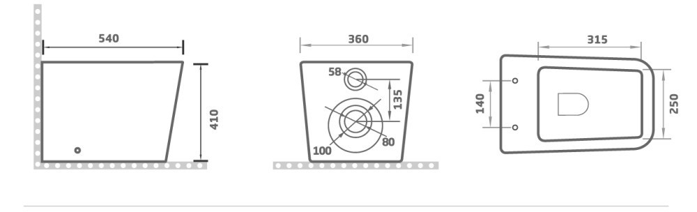 Eros ES QUADRO padlón álló WC - ülőkével komplett - perem nélküli öblítés - alsó / hátsó kifolyású