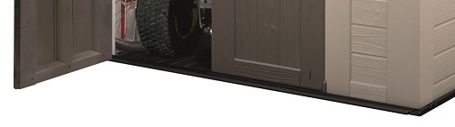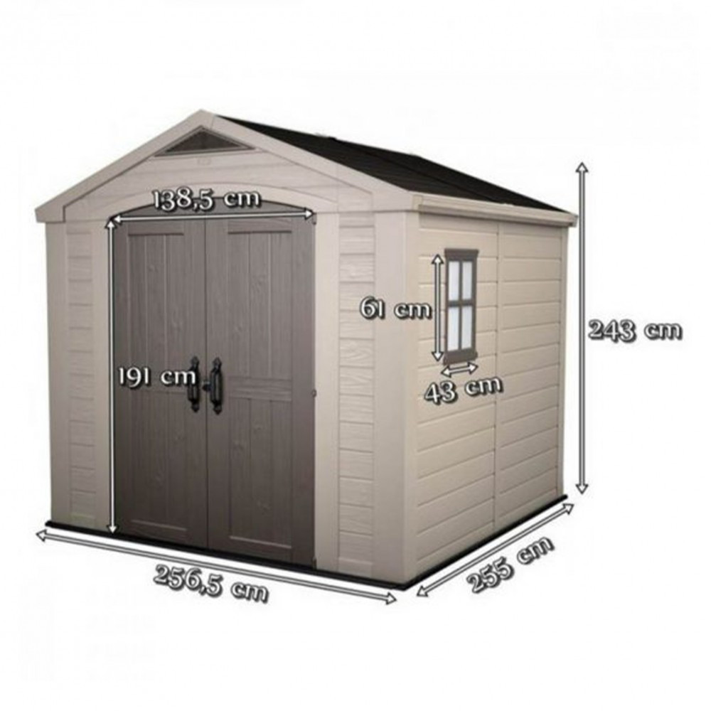 A Keter Factor 8x8 dupla íves ajtóval van ellátva, 138,5 cm széles. Ez megkönnyíti a belépést a belső térbe, és lehetővé teszi a nagyobb méretű eszközök tárolását. Az ajtónak retesze van a bezárásához.
