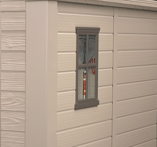 Az egyik falon egy ablak, a mennyezeten pedig egy tetőablak található, amelyen keresztül fény szűrődik be a házba illetve megovja a benne tárolt eszközöket az esőtől,hótól. Négy opció közül választhatjuk ki az ablak helyét. Mindkét megoldás elegendő természetes fényt ad.