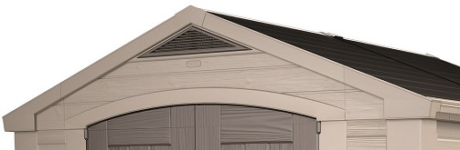 Az ajtó feletti szellőzőnyílás biztosítja a megfelelő légáramlást és védi a házban tárolt eszközöket a nedvességtől.