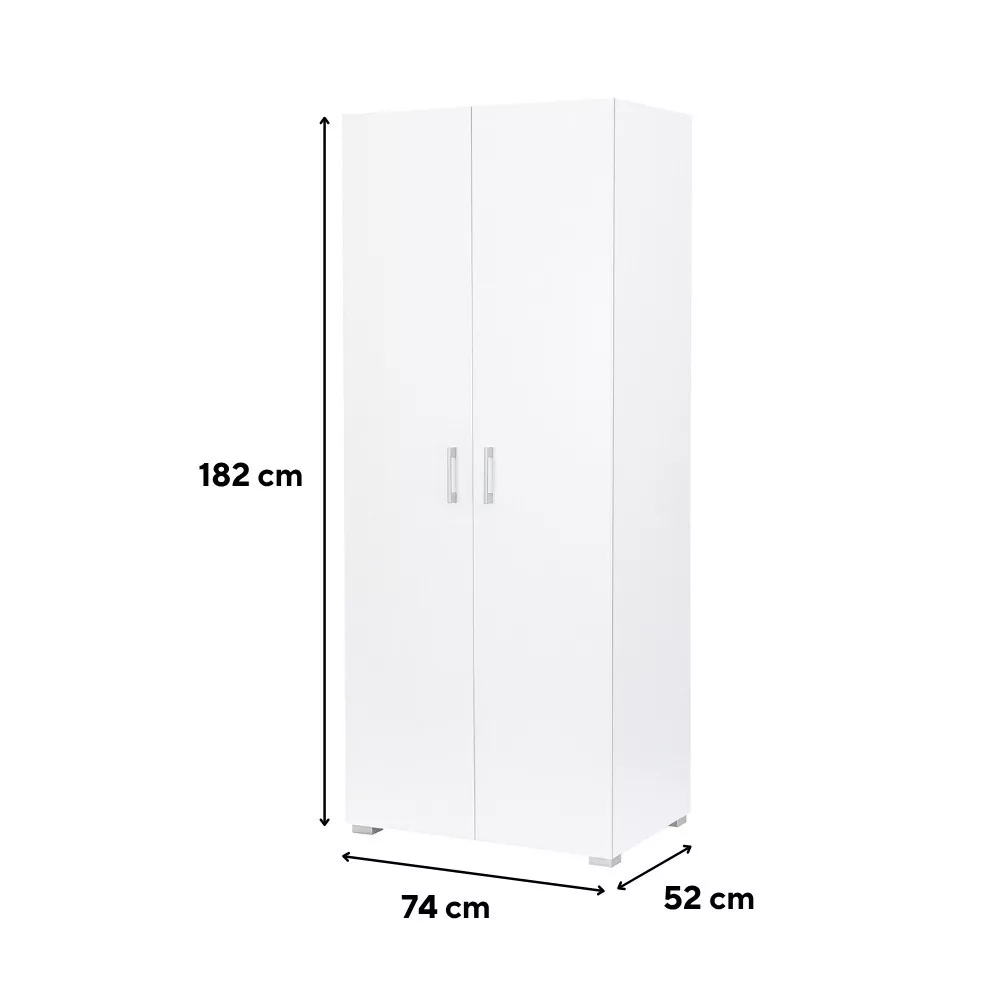 A Family ruhásszekrény ideális választás mindazok számára, akik kis helyen is hatékony tárolási megoldást keresnek. A 74 cm széles és 182 cm magas szekrény kompakt kialakításával és fehér színével harmonikusan illeszkedik bármely hálószobába, vendégszobába vagy előszobába. A kétajtós kivitel mögött egy praktikus akasztórúd és egy felső polc segíti a rendszerezett tárolást – legyen szó ruhákról, kabátokról, dobozokról vagy egyéb kiegészítőkről.